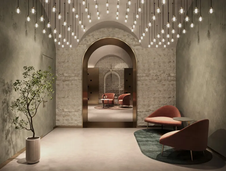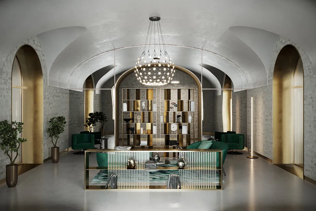 Жители заходят в дом через сводчатую арку и оказываются в своём микрокосме: лобби с историческими кирпичными сводами, винная комната, приватный кинозал, фитнес и spa-зона — всё это завершается двухуровневым подземным паркингом с автоматическим распознаванием номеров.
