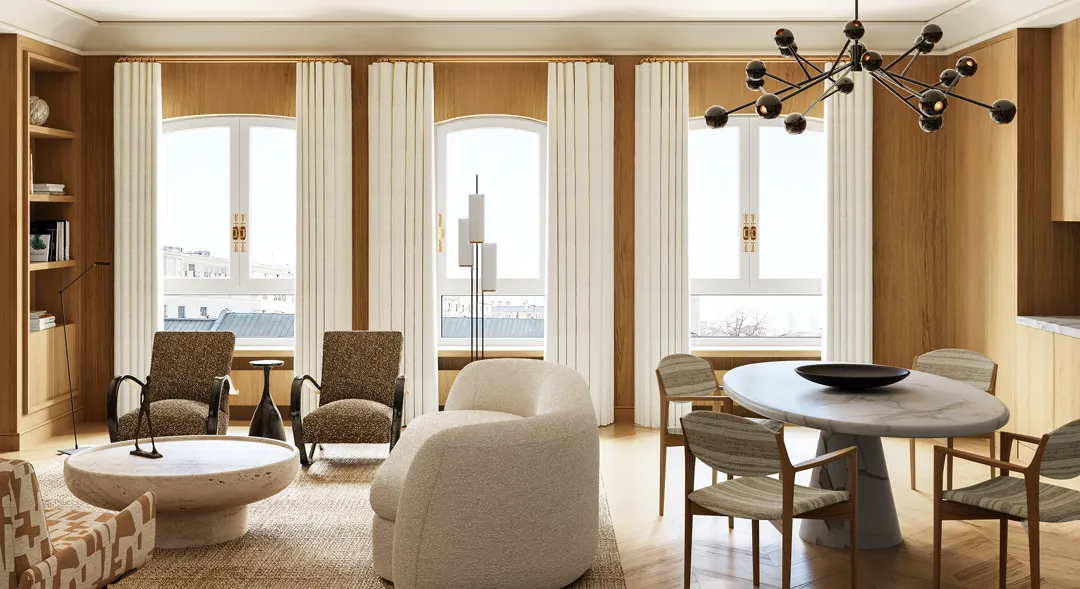 За историческими фасадами скрыты резидентские удовольствия: винный погреб для коллекций, приватный кинозал, фитнес-и spa-зона, переговорные и детская игровая.
