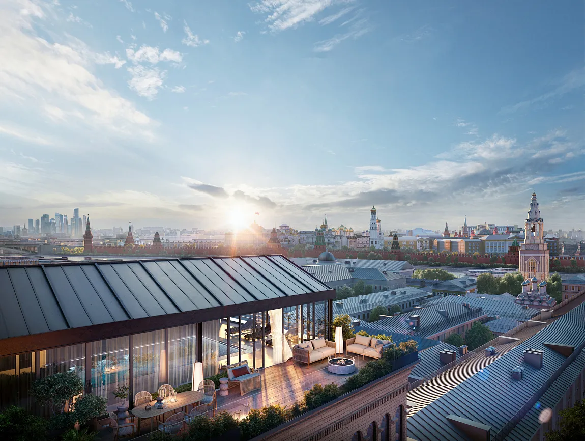 Из окон видно Москву-реку, за углом — парк «Зарядье», Третьяковская галерея и краснокирпичный «Красный Октябрь». Здесь приватность не изолирует от столицы — она делает столицу вашим продолжением.