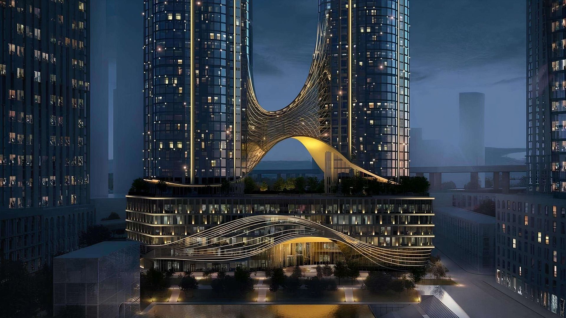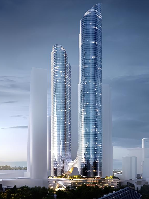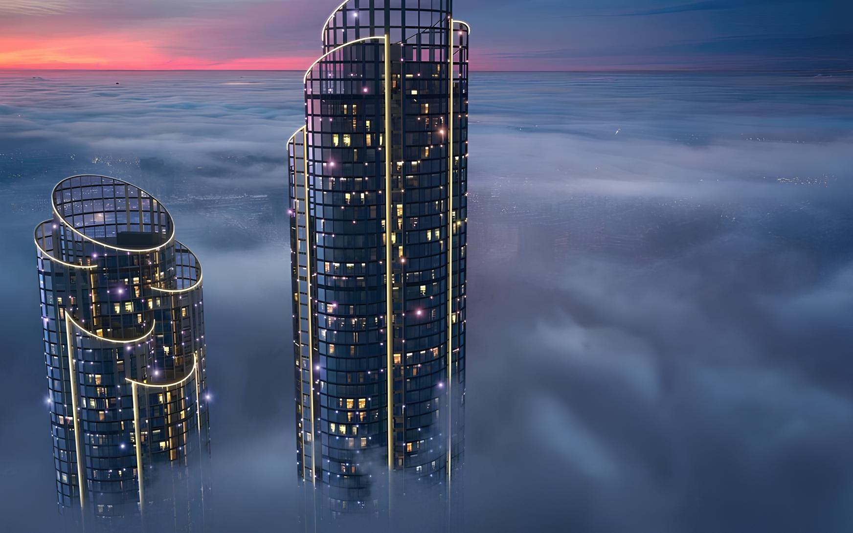 Две высотные башни с панорамным остеклением создают впечатление вертикального города. Высота, свет и масштабные виды становятся частью ежедневного пространства, подчёркивая статус локации и современный характер проекта.