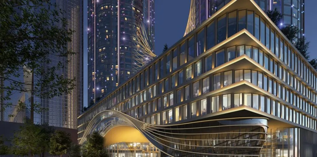 Стилобат объединяет две башни и включает коммерческие помещения, создавая удобную городскую среду. Здесь можно решать повседневные задачи, пользоваться сервисами и проводить встречи, оставаясь в пределах комплекса.